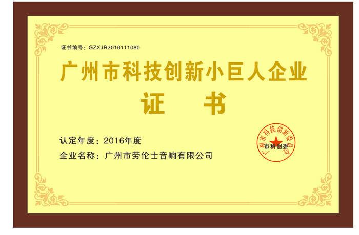 廣州創新科技小巨人證書